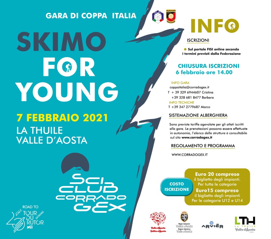Si chiuderanno il 6 febbraio alle ore 14 le iscrizioni alla gara di Coppa Italia di Sci Alpinismo categorie giovanili nell’ambito del programma Skimo for young in programma domenica 7 febbraio a La Thuile e organizzata dallo Sci Club Corrado Gex.