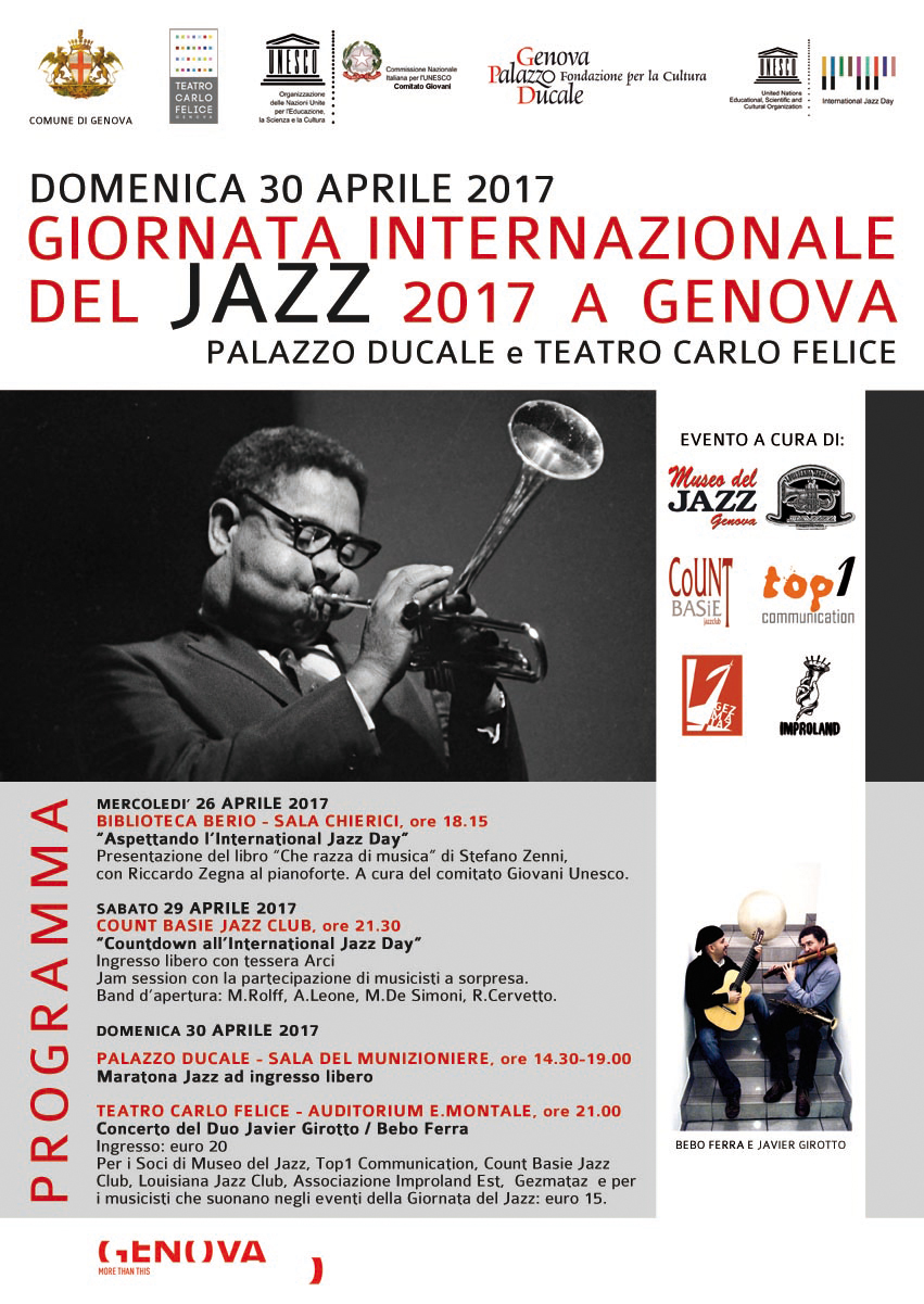 International Jazz Day Genova 2017. Top1 Communication tra gli organizzatori della manifestazione dedicata al jazz.