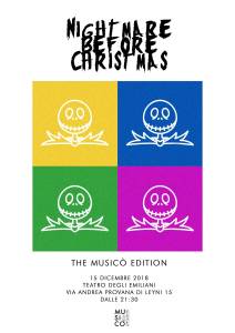 Rivisitazione del famosissimo film di Tim Burton, musicato da Danny Elfman “The Nightmare Before Christmas”. Il cast dello spettacolo è interamente composto dagli allievi della scuola di musica genovese “Musicò Performing Arts” (di Salita della Noce, zona San Martino) così come la band che li accompagna, la “Musicò Orkestra”. Gli stessi musicisti hanno curato gli arrangiamenti, l’adattamento teatrale, le scenografie e i costumi, rendendo lo spettacolo fresco e innovativo. Una prima produzione interamente realizzata nel Centro Sottostrada che ospita la scuola “Musicò Performing Arts” ed il primo banco di prova per i ragazzi che per la prima volta si cimentano in un allestimento teatrale vero e proprio.